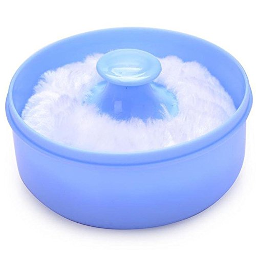 SODIAL 赤ちゃんのソフトなフェース化粧パウダーパフ スポンジボックスケースコンテナ(青)