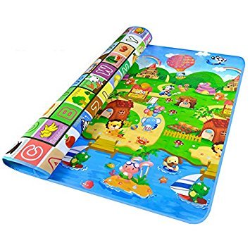 SODIAL(R) ダブルサイド 防水 赤ちゃん野ソフトなクロールマット ピクニックブランケットプレイマット-アルファベット+農場