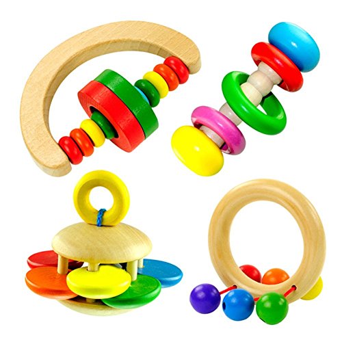ベビーハンドベル,SODIAL(R)ベビー木製ベルラトル玩具ハンドベル音楽教育打楽器