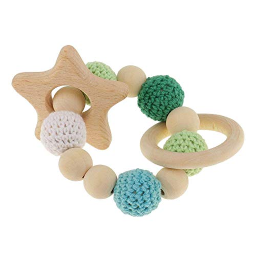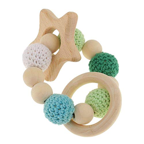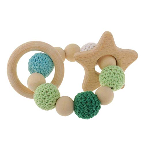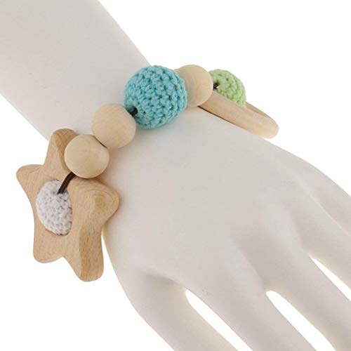 SODIAL 木製ティーシングリング1個 かわいいおもちゃのガラガラ おもちゃの赤ちゃん用歯磨きアクセサリー- マルチカラー - 星
