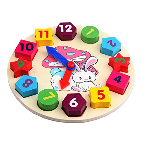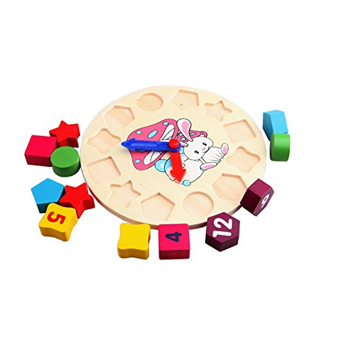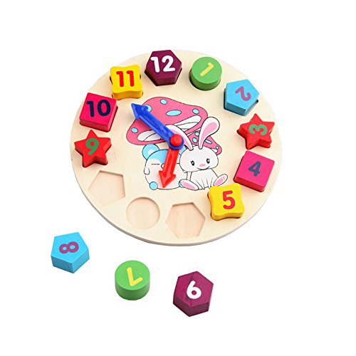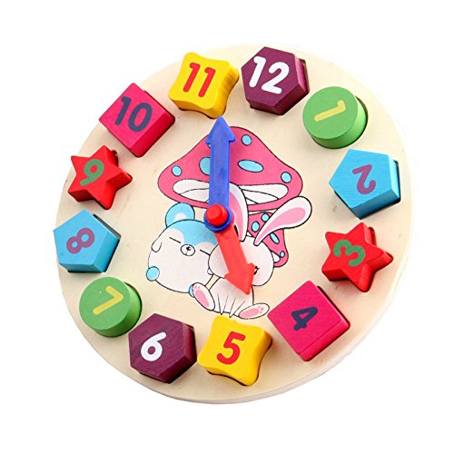SODIAL 子供の木製のデジタルジオメトリ時計教育玩具 ビルディングブロック玩具