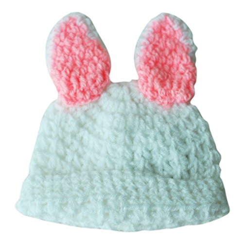 SODIAL(R) 赤ちゃん、幼児、子供の衣装 かぎ針編みをするニットキャップ 花柄、動物柄付きのキャップ 撮影用服 B-白いうさぎ