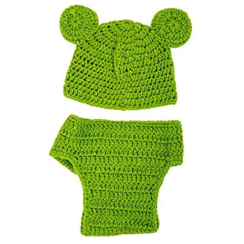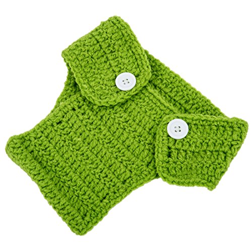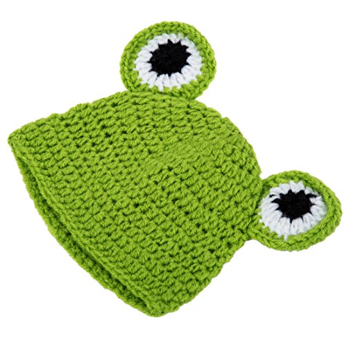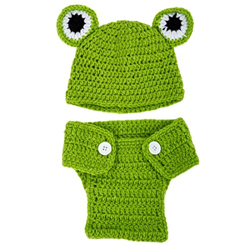 SODIAL(R) 子供、赤ちゃん、女の子の手作りプリンスコスチューム 動物ビーニー写真の小道具セット かぎ針編みのキャップ&帽子-カエル