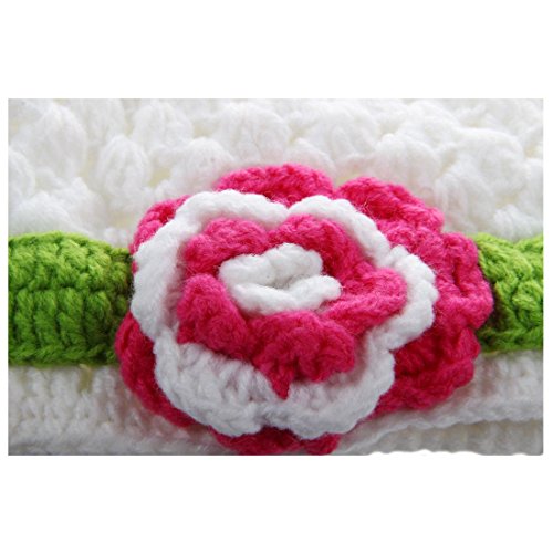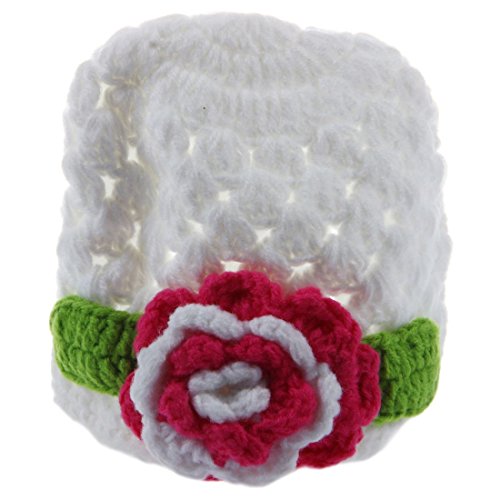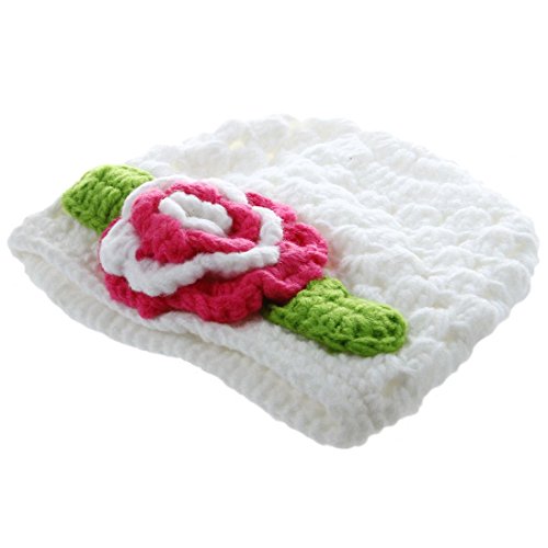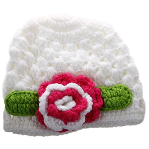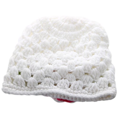 SODIAL(R) ニットキャップベビーフラワーかぎ針編み ビーニーハンドメイドハット ウィンターニットキャップ (ホワイト)