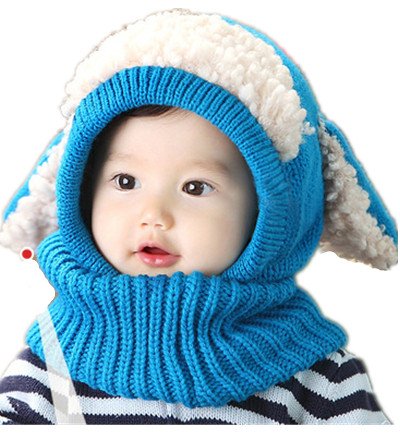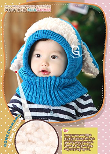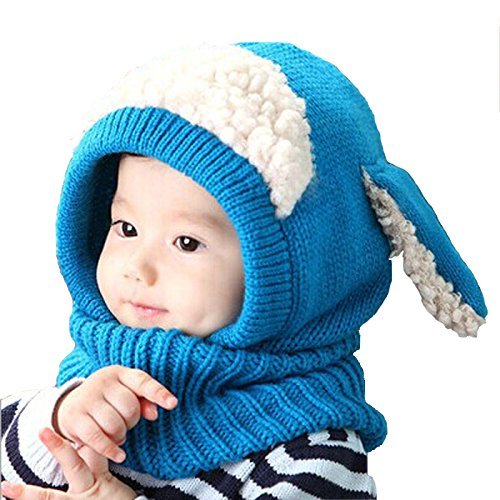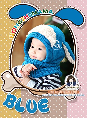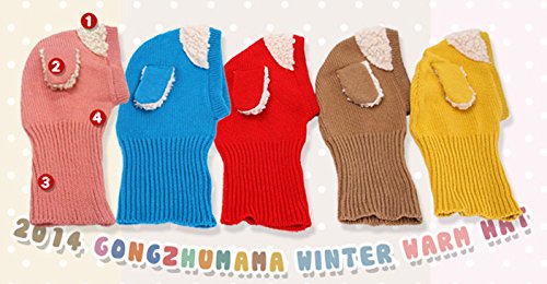 SODIAL 頭&首まであたたかい かわいい 犬耳 帽子 秋冬 子供 こども ニット帽子 ベビー キッズ 赤ちゃん ケープ 一体型 マフラー ネックウォーマー フード 青 赤 黄 コーヒー ピンク