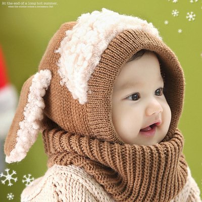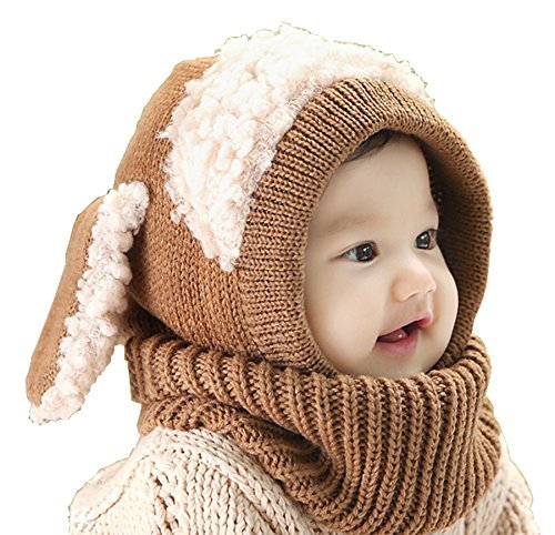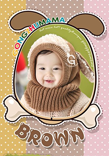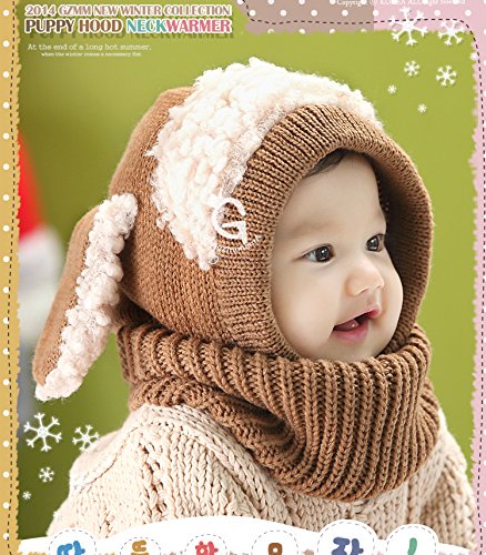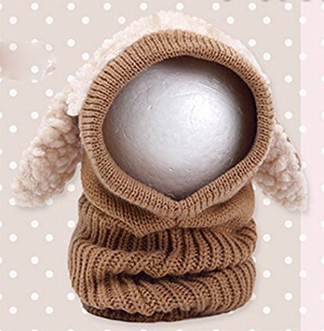 SODIAL 頭&首まであたたかい かわいい 犬耳 帽子 秋冬 子供 こども ニット帽子 ベビー キッズ 赤ちゃん ケープ 一体型 マフラー ネックウォーマー フード 青 赤 黄 コーヒー ピンク