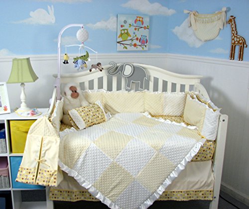 SoHo Soft Yellow Minky Chenelle Baby Crib Nursery Bedding Set 15 pcs included Diaper Bag with Changing Pad & Bottle Case by SoHo Designs