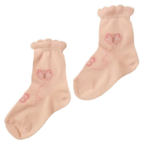 SOK ピンクのちょうちょとバラ 幼児用ソックス サイズ:14 - 15.5