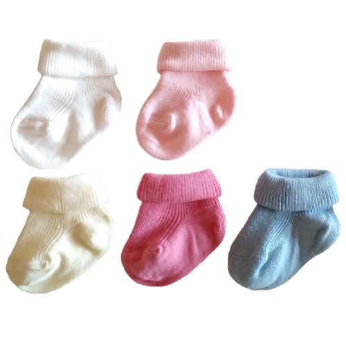 SOK 新生児用 口ゴムのゆるい二重折り返ソックス マルチカラー 5足入り サイズ: 0 - 3ヶ月