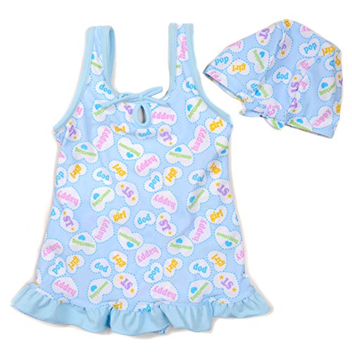 SOMETHINGのスイムキャップ付きワンピース水着2点セット sw1143 100cm ライトブルー