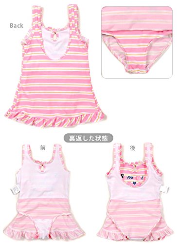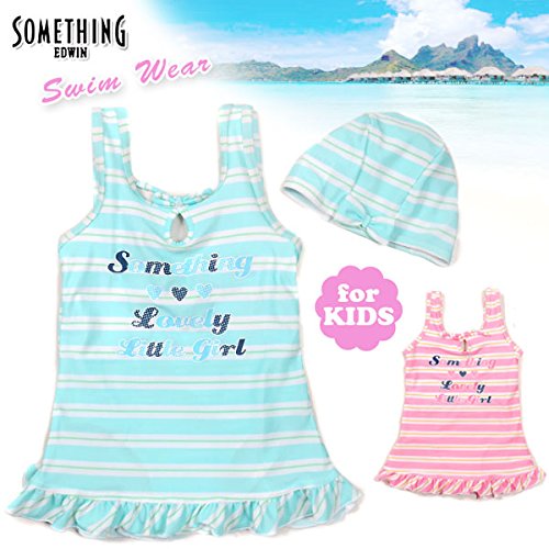 SOMETHING(サムシング)の子供用ブランド水着。裾のフリルが可愛いワンピースタイプの水着です。同柄のスイムキャップ付き。マリンテイストのボーダー柄が爽やかでかわいらしいデザインです。