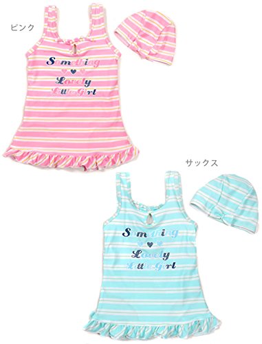SOMETHINGのスイムキャップ付きワンピース水着2点セット sw1138 130cm ピンク