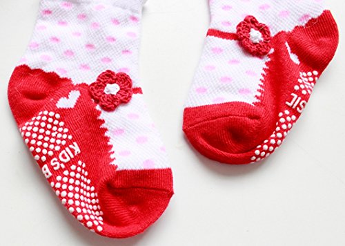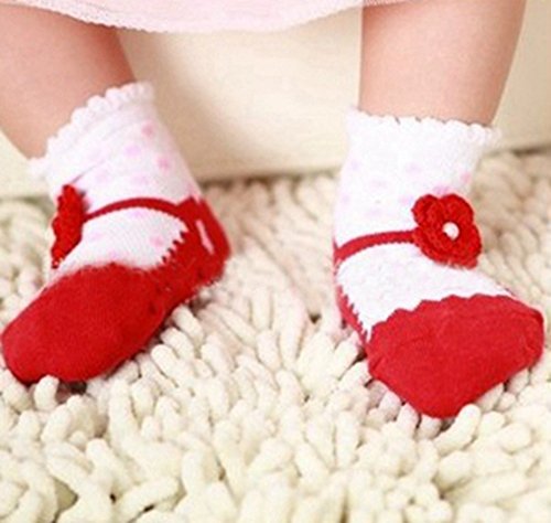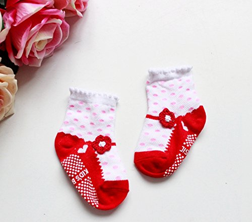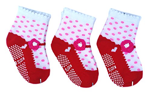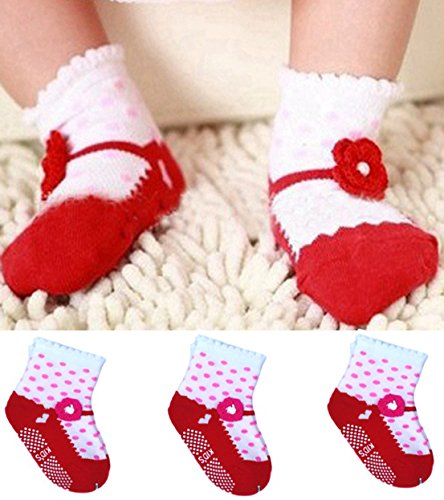 [ソミラ] SOMILA ベビーソックス 靴下 3足セット 可愛い 足袋風 滑り止め付き 1~3歳 赤