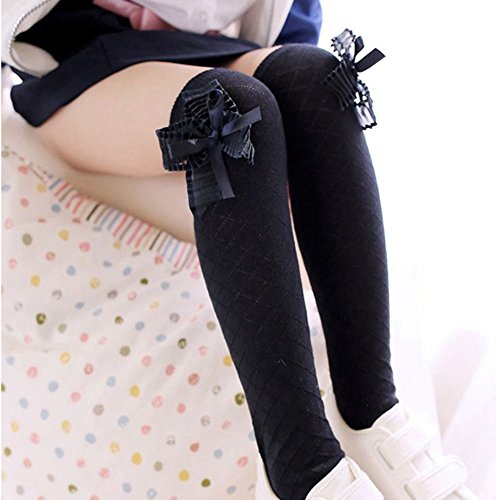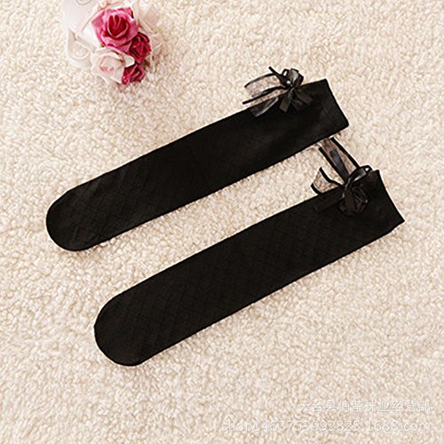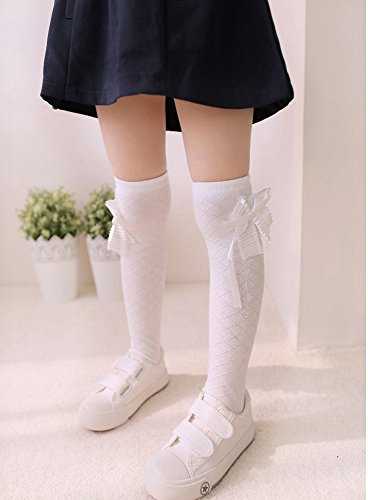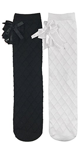 [ソミラ] SOMILA キッズ ハイソックス ガールズ 靴下 2足セット 蝶結び フォーマル 入学式 卒業式 冠婚葬祭 可愛い 女の子 黒/白