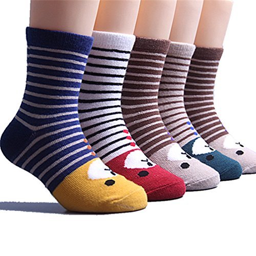 [ソミラ] SOMILA 子供用 靴下 ソックス キッズ 5足セット 可愛い動物柄 横縞 男の子 女の子 L