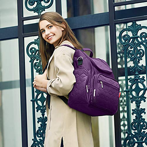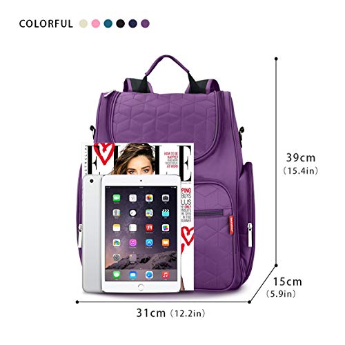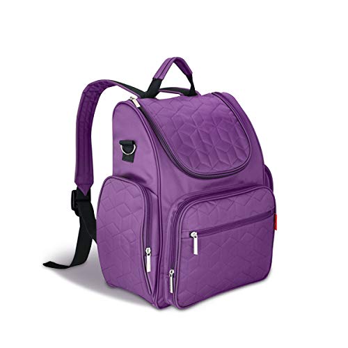 SONARIN多機能マザーズバッグ、ベビーカーストラップ、おむつ交換パッド、ベビーおむつ交換バックパック、おむつバッグ、旅行バックパックオーガナイザー、防水、大容量、スタイリッシュで耐久性、理想的なギフト(パープル)