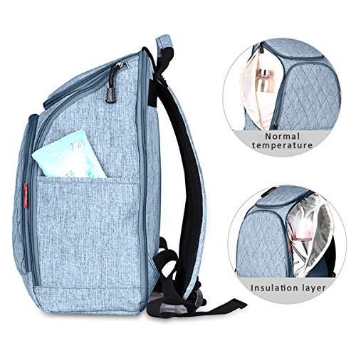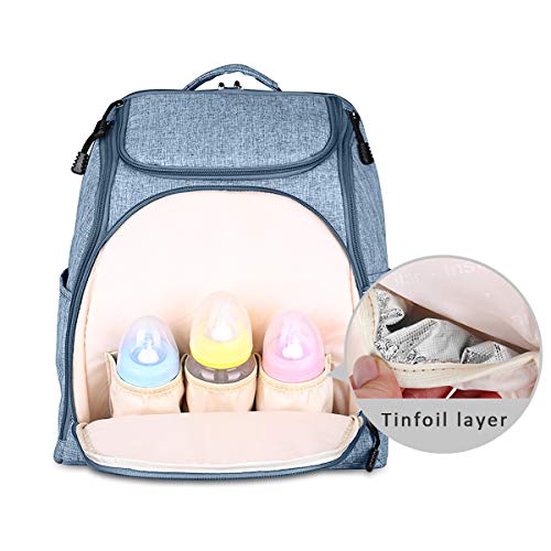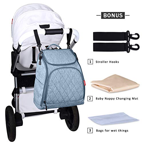 SONARIN多機能マザーズバッグ、ベビーカーストラップ、おむつ交換パッド、大容量、ベビーおむつ交換バックパック、おむつバッグ、旅行バックパックオーガナイザー、防水、背面に大きな開口、スタイリッシュで耐久性、理想的なギフト(ブルー)