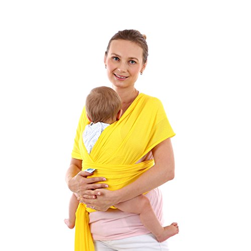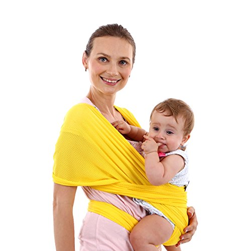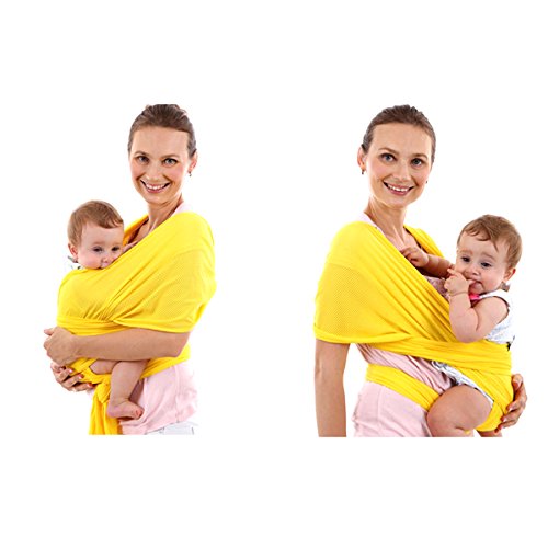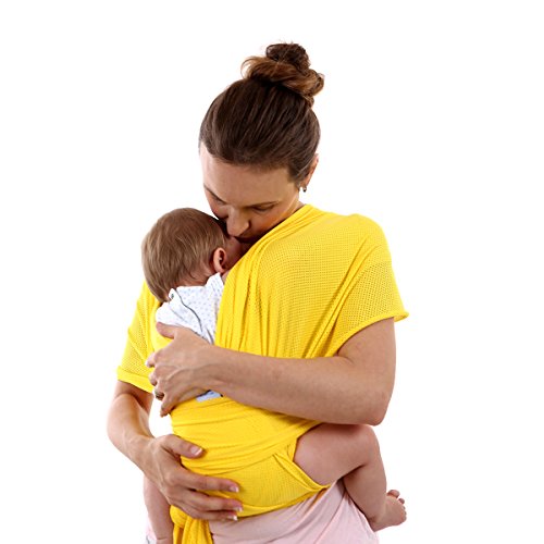 SONARINオールシーズン通気性ベビースリングラップベビーキャリア、新生児、乳幼児、ソフトコットン、日本正規、コンフォートスパンデックス、同色布袋詰め、100%保証と無料配達、理想的なギフト(イエロー)