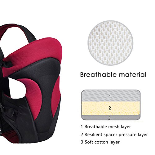 SONARIN新しい安全で快適、強化バックバック、人間工学に基づいたオールシーズン多機能通気性ベビーキャリア、成長のチャイルド、様々な場所、最高の赤ちゃんのギフト(暗赤色)