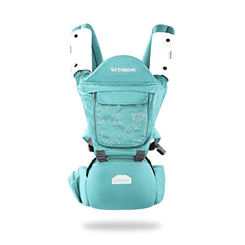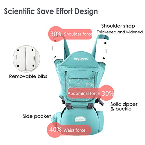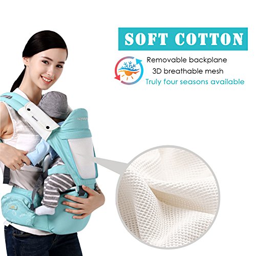 SONARIN 3-in-1マルチファンクションプレミアムベビーキャリア(着脱式ヒップシート付き)、通気性メッシュバック、人間工学に基づいた100%コットン、インフレータブルスツール、安全で快適な、お子様の成長に最適なギフト(ライトグリーン)