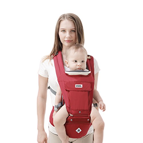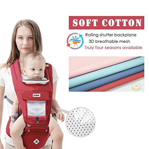 SONARIN多機能Hipseatベビーキャリア、通気性のあるストラップ、人間工学に基づいた、100%コットン、大容量収納、11持ち越しポジション、安全で快適な、あなたの子供の成長に適応、持ち運びが容易で簡単なママ、理想的なギフト(暗赤色)