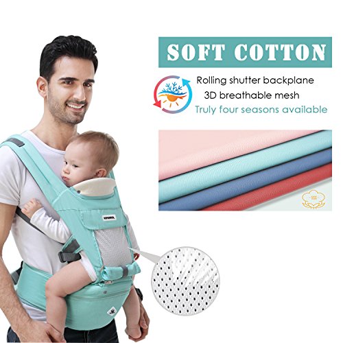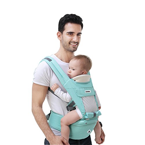 SONARIN多機能Hipseatベビーキャリア、通気性のあるストラップ、人間工学に基づいた、100%コットン、大容量収納、11持ち越しポジション、安全で快適な、あなたの子供の成長に適応、持ち運びが容易で簡単なママ、理想的なギフト(ライトグリーン)