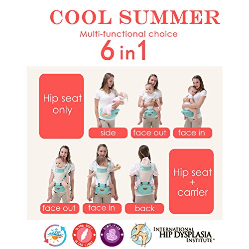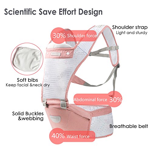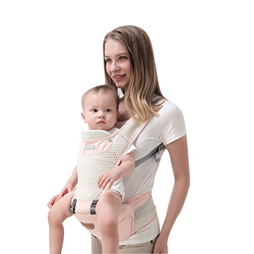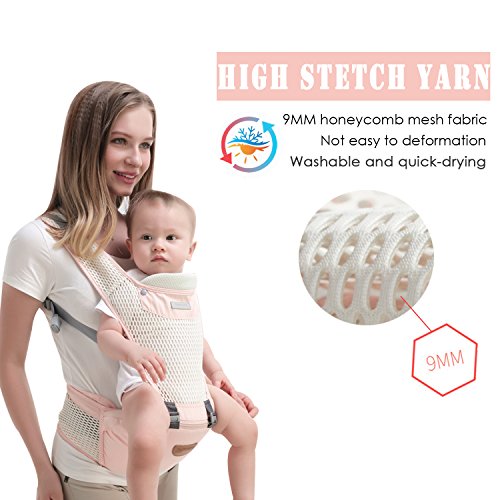 SONARIN 2017フロントHipseatベビーキャリア、オールシーズンズコモン、高ストレッチヤーン生地、夏の通気性、人間工学に基づいた、6つの持ち運び可能な姿勢、安全で快適な、あなたの子供の成長に適した、持ち運びが容易で簡単なママ、理想的なギフト(ピンク)