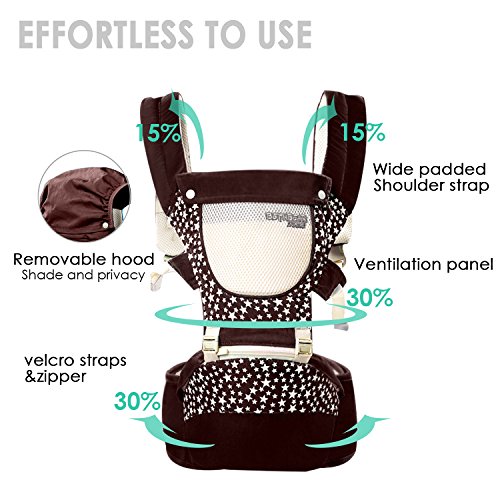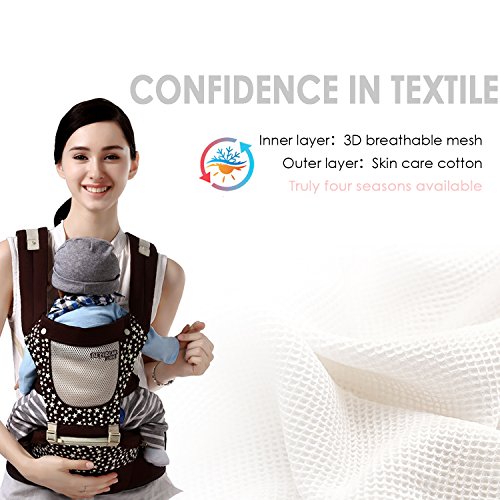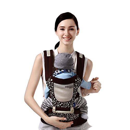 SONARIN通気性の組み合わせHipseatベビーキャリア、人間工学に基づいた、100%綿、持ち運びに便利なママ、フリーサイズ、6つの持ち運び可能な位置、赤ちゃんの居心地の良い&うるおい、あなたの子供の成長に適した、100%保証と無料配達、理想的なギフト(褐色)