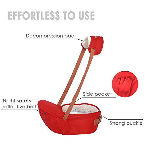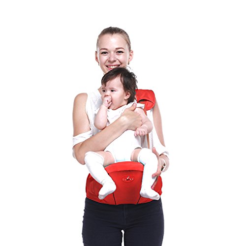 SONARIN プレミアムHipseatベビーキャリア、安全かつ快適、フリーサイズ、フロントキャリアベルト、4つの持ち運び可能な位置、子供の成長に合わせて、100%保証と無料配達、理想的なギフト(暗赤色)