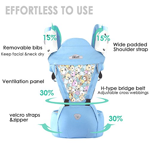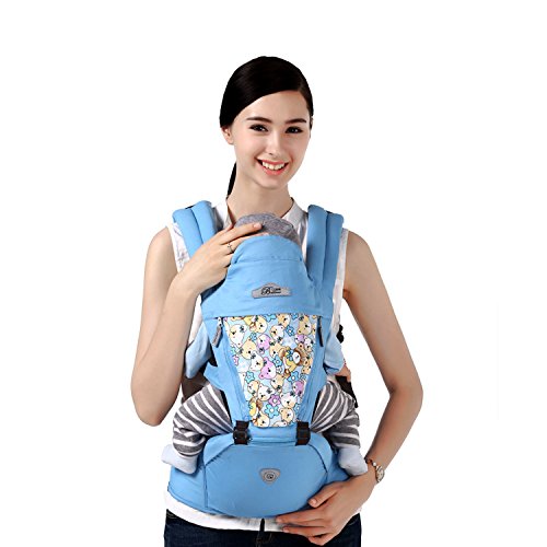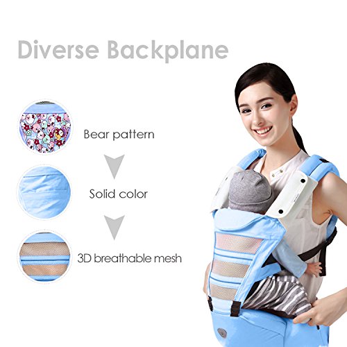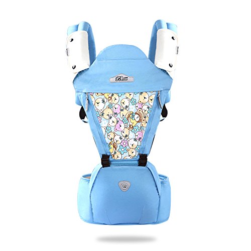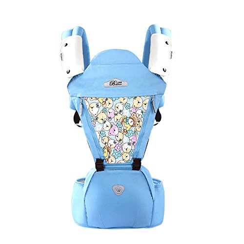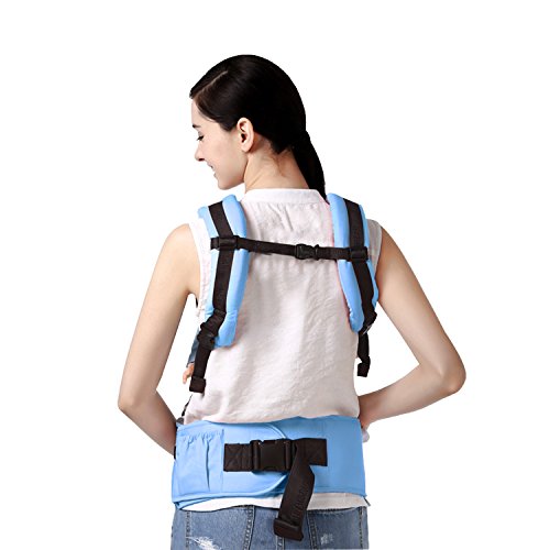 SONARINオールシーズンコモンHipseatベビーキャリア、換気パネル、人間工学に基づいた、100%綿、通気性、ワンサイズはすべて、6つの持ち運び可能な位置、赤ちゃんの居心地の良い&うるおい、子供の成長に適応、100%無限保証、理想的なギフト(ライトブルー)