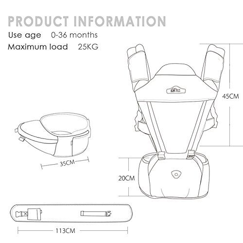 - 適用年齢と体重:赤ちゃんの0-36ヶ月、最大負荷:25KG、調節可能なウエストサイズは最大44.5インチ(約113cm)になります。
