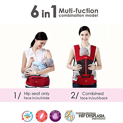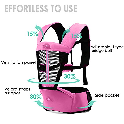 SONARIN多機能通気性Hipseatベビーキャリア、前面と背面、通気性メッシュバック、人間工学に基づいた、1つのサイズはすべて、6つの持ち運び可能な位置、安全で快適な、子供の成長に適応、100%無限保証、理想的なギフト(ピンク)