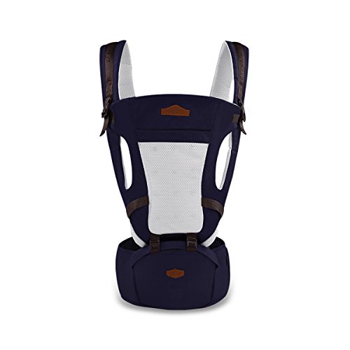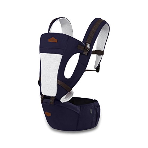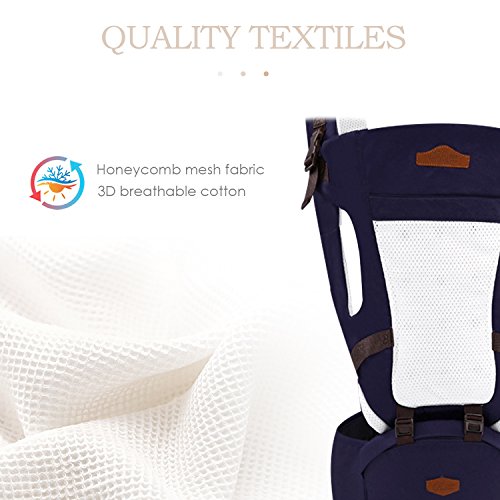 SONARINオールシーズンコモンHipseatベビーキャリア、3in1マルチファンクション、人間工学に基づいた、100%コットン、1つのサイズはすべて、持ち運びが簡単で簡単なママ、居心地の良い&うるおいの赤ちゃんのために、子供の成長に適応、100%保証と無料配達、理想的なギフト(ダークブルー)