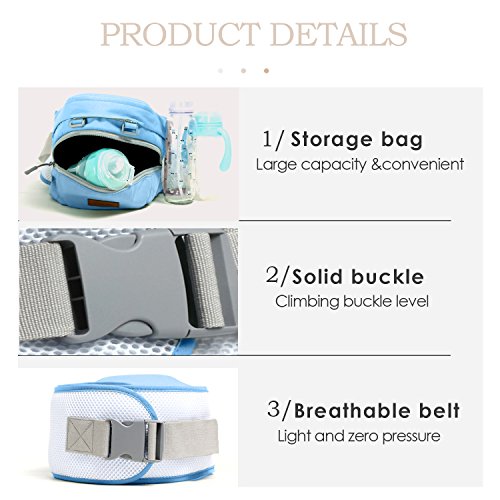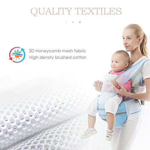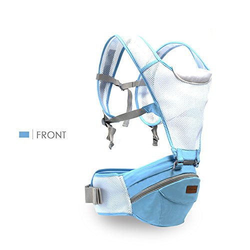 SONARIN 360°通気性プレミアムHipseatベビーキャリア、人間工学に基づいた、ミイラバッグ、100%コットン、通気性メッシュ裏地、持ち運びが簡単で簡単なママ、居心地の良い&うるおいの赤ちゃんのために、子供の成長に適応、100%保証と無料配達、理想的なギフト(青)