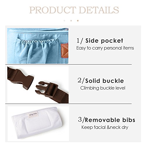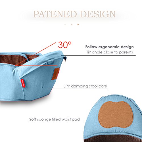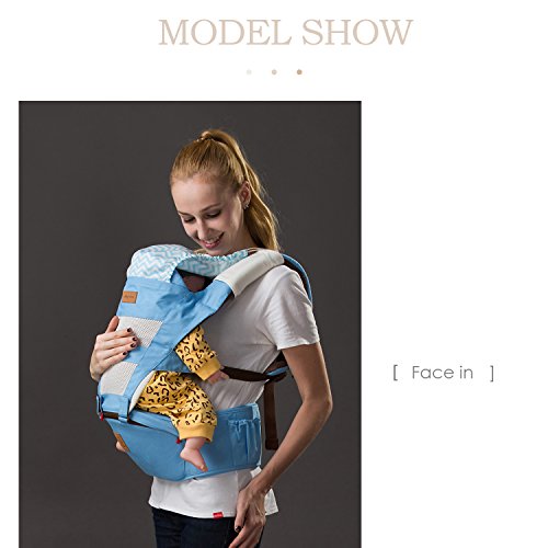 SONARIN フロントプレミアムHipseatベビーキャリア、人間工学に基づいた、ミイラバッグ、100%コットン、通気性のある、多機能、フリーサイズ、持ち運びが簡単で簡単なママ、居心地の良い&うるおいの赤ちゃんのために、子供の成長に適応、100%保証と無料配達、理想的なギフト(青)