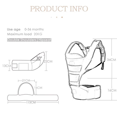 - 適用年齢と体重:赤ちゃんの0-36ヶ月、最大負荷:20KG、調節可能なウエストサイズは最大45.3インチ(約115cm)になります。