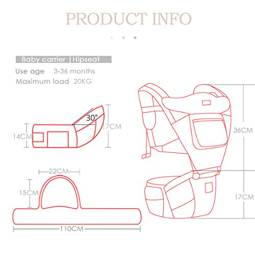 - 適用年齢と体重:赤ちゃんの3-36ヶ月、最大負荷:20KG、調節可能なウエストサイズは最大43.3インチ(約110cm)になります。