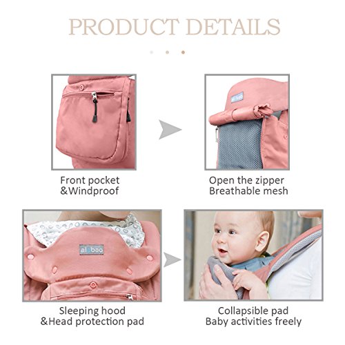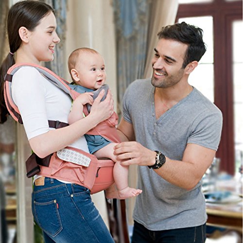 SONARIN 4つのシーズン人間工学的なHipseatベビーキャリア、オックスフォード布、6つの持ち運び可能な位置、通気性のあるメッシュバック、フリーサイズ、持ち運びが簡単で簡単なママ、安全で快適な、子供の成長に適応、100%無限保証、理想的なギフト(ピンク)