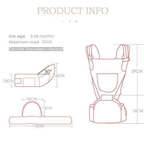 - 適用年齢と体重:赤ちゃんの0-36ヶ月、最大負荷:25KG、調節可能なウエストサイズは最大45.3インチ(約115cm)になります。
