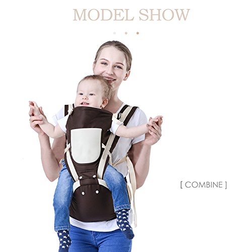 SONARIN 3 in 1多機能フロントHipseatベビーキャリア、ポリエステルコットン、9つのキャリーポジション、大型ポケット、フリーサイズ、人間工学に基づいた、安全で快適な、子供の成長に適応、100%無限保証、理想的なギフト(褐色)
