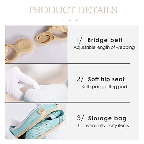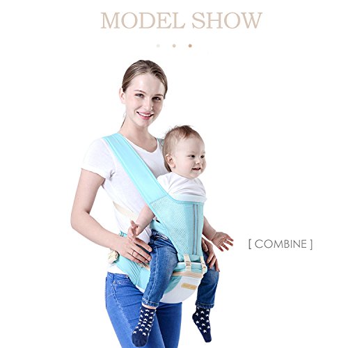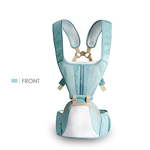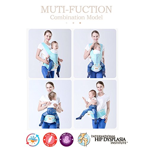 SONARIN通気性の高いプレミアムHipseatベビーキャリア、ポリエステル、6キャリーポジション、オールシーズンコモン、すべてのサイズにフィット、人間工学に基づいた、安全で快適な、持ち運びが簡単で簡単なママ、あなたの子供の成長に適応、100%保証と無料配達、理想的なギフト(青)