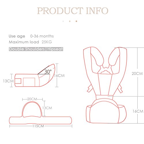 - 適用年齢と体重:赤ちゃんの0-36ヶ月、最大負荷:25KG、調節可能なウエストサイズは最大45.3インチ(約115cm)になります。