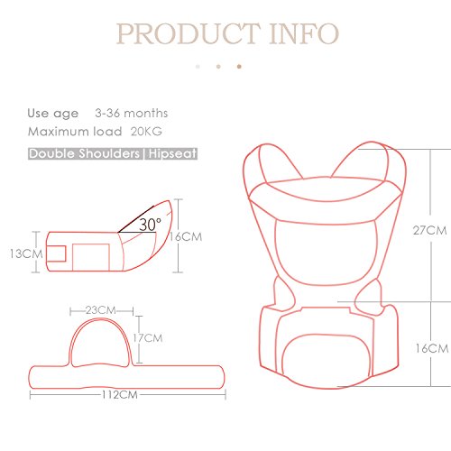 - 適用年齢と体重:赤ちゃんの0-36ヶ月、最大負荷:20KG、調節可能なウエストサイズは最大44.1インチ(約112cm)になります。