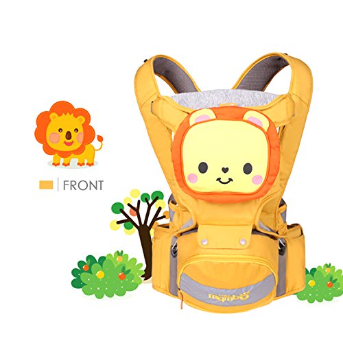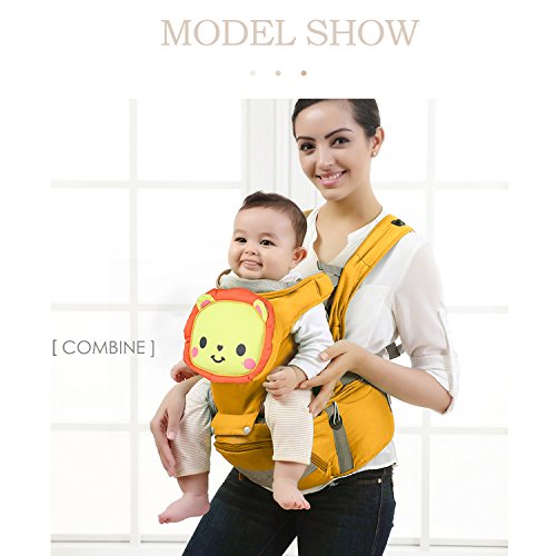 SONARIN 4in1マルチファンクション漫画版Hipseatベビーキャリア、人間工学に基づいた、通気性のある、100%コットン、1つのサイズはすべて、持ち運びが簡単で簡単なママ、居心地の良い&うるおいの赤ちゃんのために、子供の成長に適応、100%保証と無料配達、理想的なギフト(オレンジ)