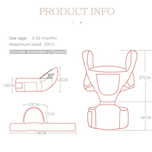 - 適用年齢と体重:赤ちゃんの0-36ヶ月、最大負荷:20KG、調節可能なウエストサイズは最大46.5インチ(約118cm)になります。