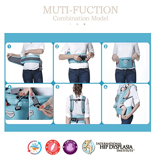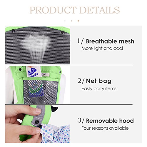 SONARIN フロントマルチファンクションHipseatベビーキャリア、人間工学に基づいた、通気性のある、ポリエステル、1つのサイズはすべて、持ち運びが簡単で簡単なママ、居心地の良い&うるおいの赤ちゃんのために、子供の成長に適応、100%保証と無料配達、理想的なギフト(緑)
