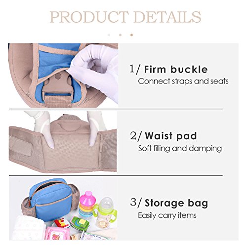 SONARINフロントオールシーズンHipseatベビーキャリア、通気性のある、100% 綿、、すべてのサイズにフィット、赤ちゃんのための居心地の良い&うるおい、持ち運びが簡単で簡単なママ、あなたの子供の成長に適応、100%保証と無料配達、理想的なギフト(青)