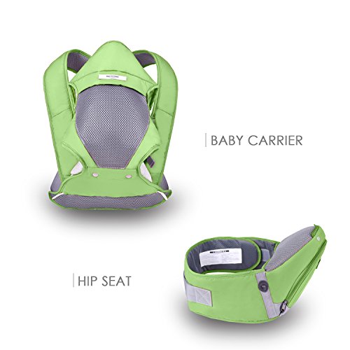 SONARINフロント 多機能Hipseatベビーキャリア、通気性メッシュ裏地、すべてのサイズにフィット、赤ちゃんのための居心地の良い&うるおい、持ち運びが簡単で簡単なママ、あなたの子供の成長に適応、100%保証と無料配達、理想的なギフト(緑)