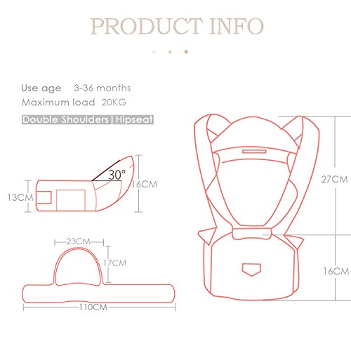 - 適用年齢と体重:赤ちゃんの0-36ヶ月、最大負荷:20KG、調節可能なウエストサイズは最大43.3インチ(約110cm)になります。