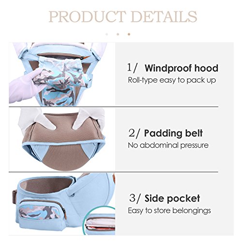 SONARIN 雲 Hipseatベビーキャリア、多機能、すべてのサイズにフィット、赤ちゃんのための居心地の良い&うるおい、持ち運びが簡単で簡単なママ、あなたの子供の成長に適応、100%保証と無料配達、理想的なギフト(青)